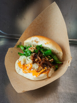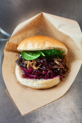 Geschmorter Pilz Burger / Sauerkraut & Hoisin Sauce (V)