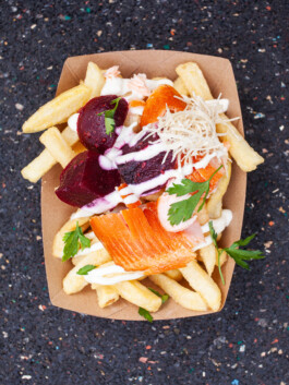 Loaded Fries / Flammlachs / Bete / Meerrettich & Dill